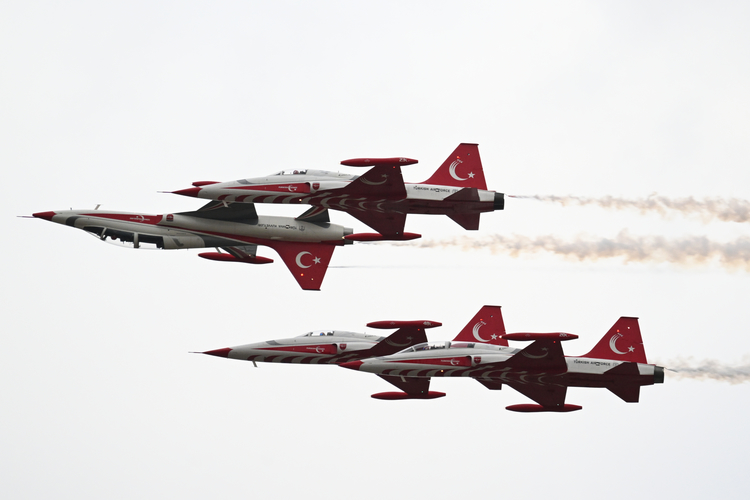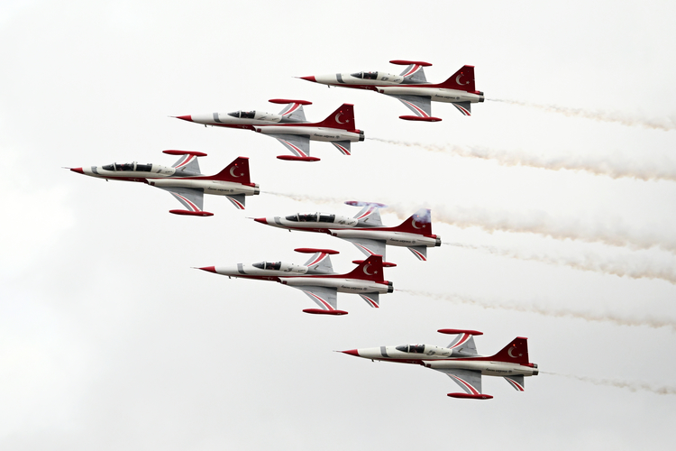 Ay yıldızlı jetler yarım saatlik uçuş boyunca akrobatik hareketler sergiledi.