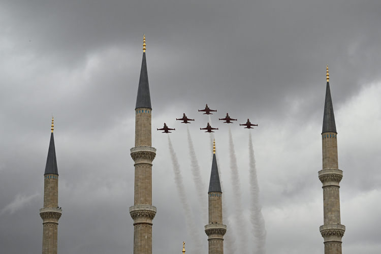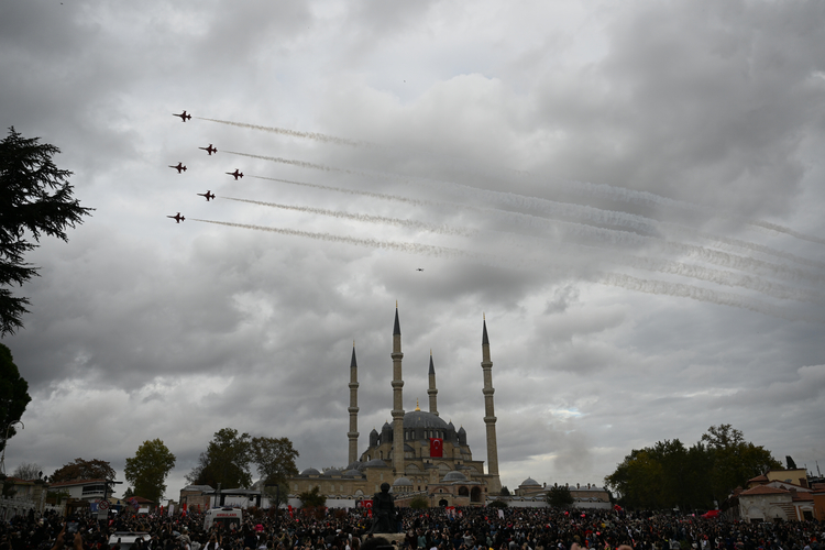 Cumhuriyetin 102. yılı kutlamaları kapsamında havalanan Türk Yıldızları, Mimar Sinan’ın ustalık eseri Selimiye Camisi’nin üzerinde uçuş yaptı.